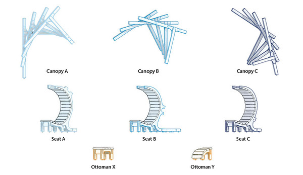 MARISOL connects water and sun, offering shade and comfort for a relaxing poolside experience. This project was a studio wide project that explord in design, creation, and construction, resulting in a wave- and sun-inspired canopy with adjustable features, including a removable leg rest and storage, making each visit both versatile and memorable.